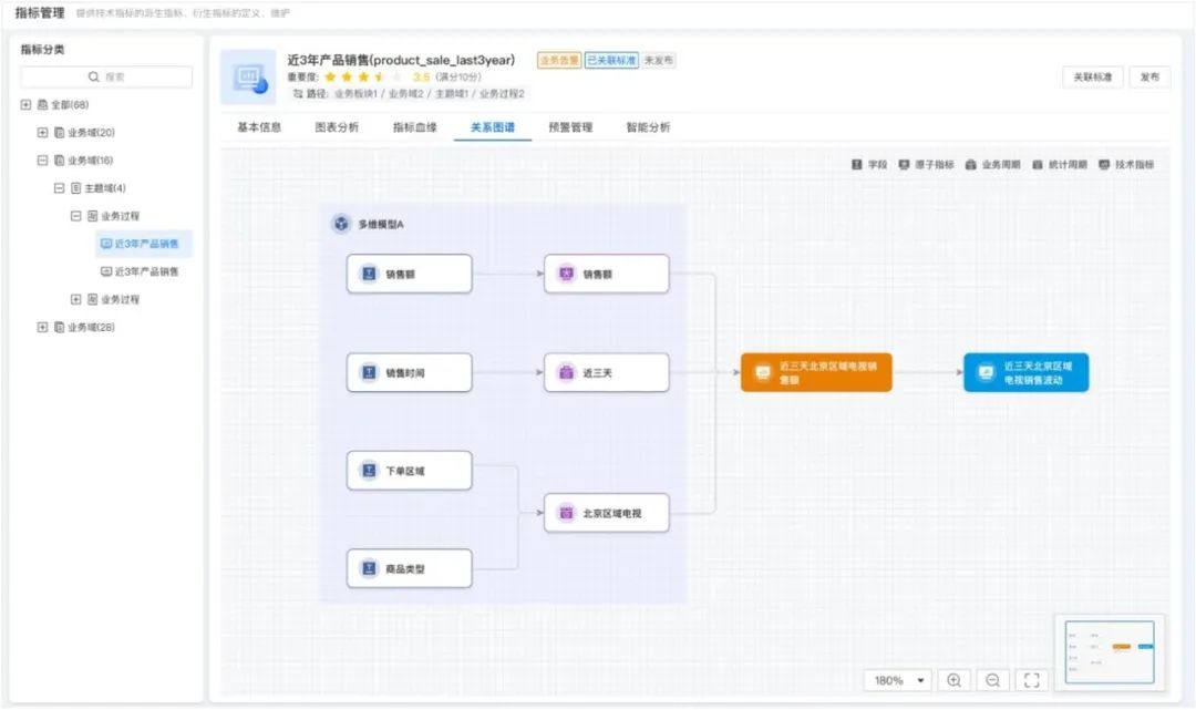 平臺將指標(biāo)拆分成更細(xì)粒度的原子指標(biāo)、統(tǒng)計周期、業(yè)務(wù)限定去管理,提高指標(biāo)的開發(fā)速度,提升指標(biāo)的復(fù)用性、統(tǒng)一指標(biāo)的業(yè)務(wù)和技術(shù)口徑。如果指標(biāo)異常,還能實現(xiàn)指標(biāo)溯源,同時提供了從指標(biāo)標(biāo)準(zhǔn)到定義到管理的完整能力。