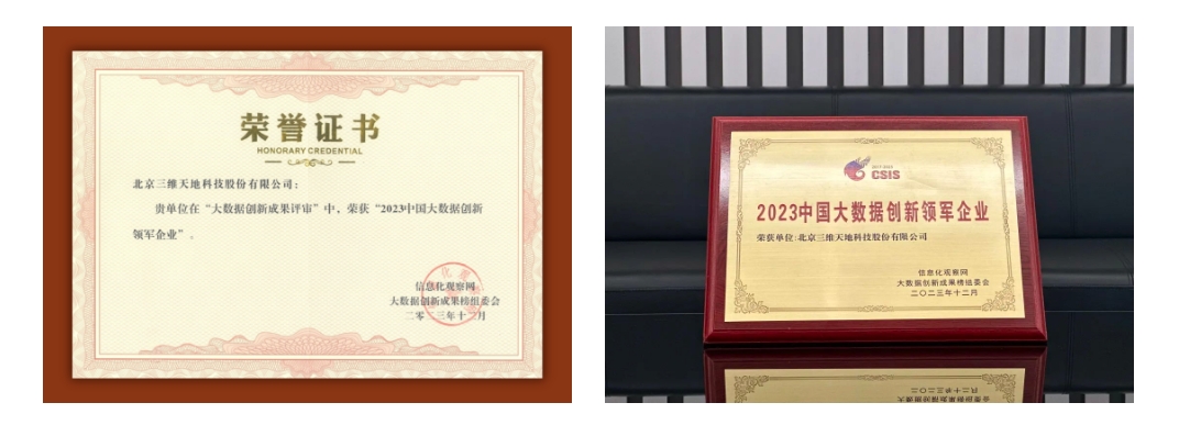點(diǎn)亮數(shù)據(jù)新價(jià)值|三維天地榮獲2023中國(guó)大數(shù)據(jù)創(chuàng)新領(lǐng)軍企業(yè)