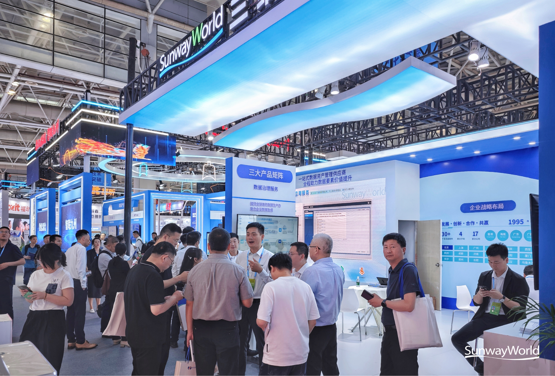 作為峰會(huì)的重要部分,現(xiàn)場(chǎng)體驗(yàn)區(qū)集中展示了各領(lǐng)域數(shù)字化最新成果,精準(zhǔn)化對(duì)接國(guó)際國(guó)內(nèi)數(shù)字化技術(shù)、產(chǎn)品和解決方案。三維天地以特裝展位亮相6號(hào)館數(shù)據(jù)要素市場(chǎng)改革區(qū)域,全方位互動(dòng)展示了公司數(shù)據(jù)管理領(lǐng)域全新產(chǎn)品、解決方案及多項(xiàng)創(chuàng)新技術(shù)成果。