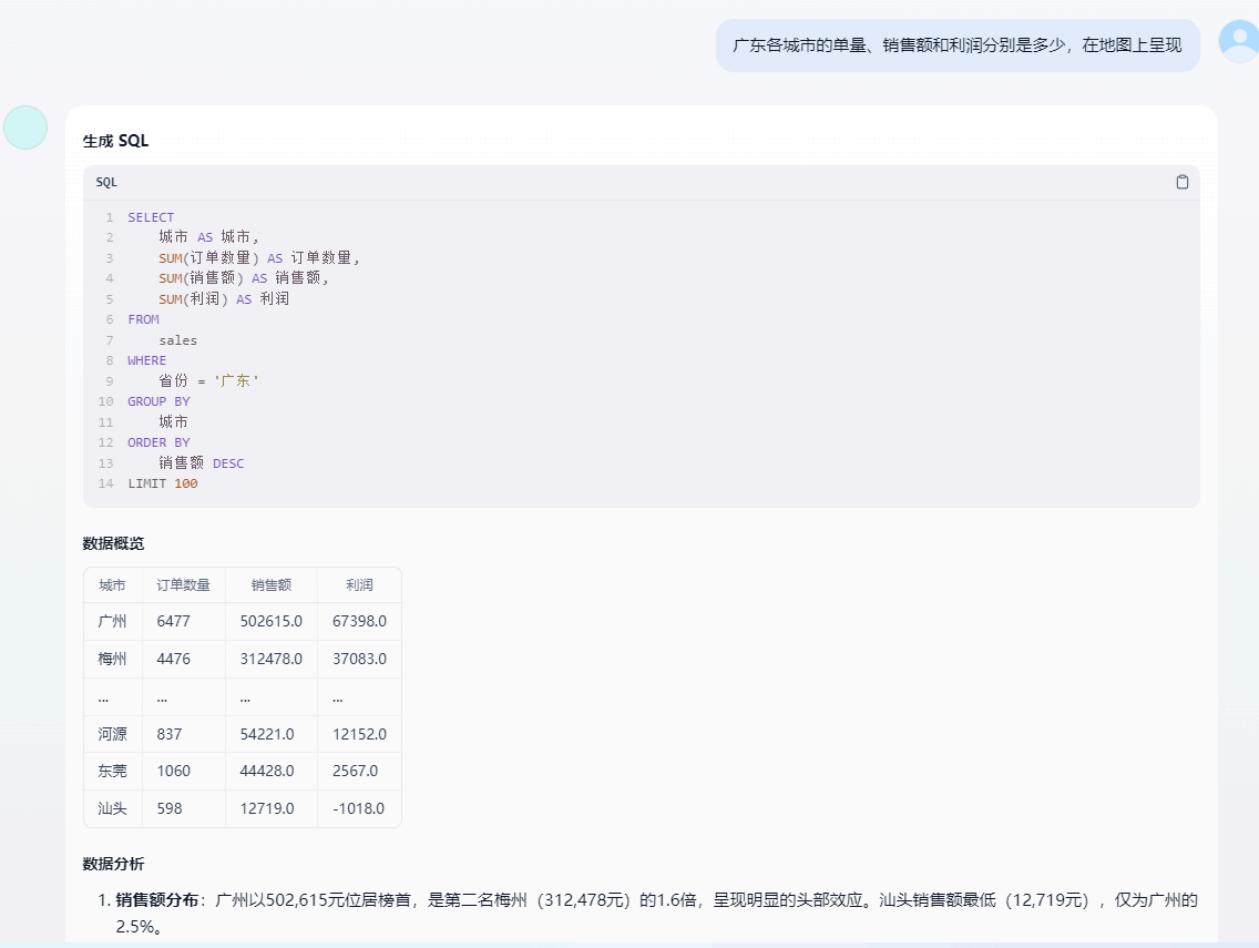 自然語言交互:通過對(duì)話式輸入(如 “對(duì)比Q3各區(qū)域銷售額” )自動(dòng)生成分析邏輯,無需編寫代碼;