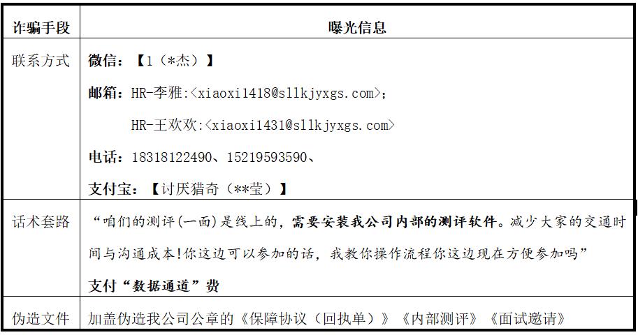 根據(jù)我公司收到的多起舉報(bào)及調(diào)查取證,現(xiàn)將詐騙分子的主要作案手段、聯(lián)系方式及相關(guān)偽造文件予以曝光,提醒公眾識別防范: